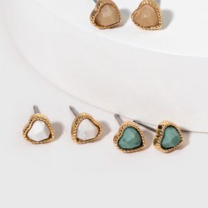 Semi Heart Gold Outline Stud Earring Set